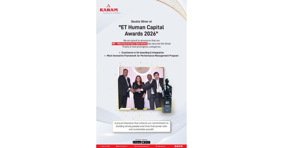 KARAM Safety, a global leader in personal protective equipment (PPE) and fall protection solutions, has been recognised at the ET Human Capital Awards 2026, with its HR – Manufacturing and Operations team securing silver trophies in two key categories—Excellence in Onboarding & Integration and Most Innovative Framework for Performance Management Programme.